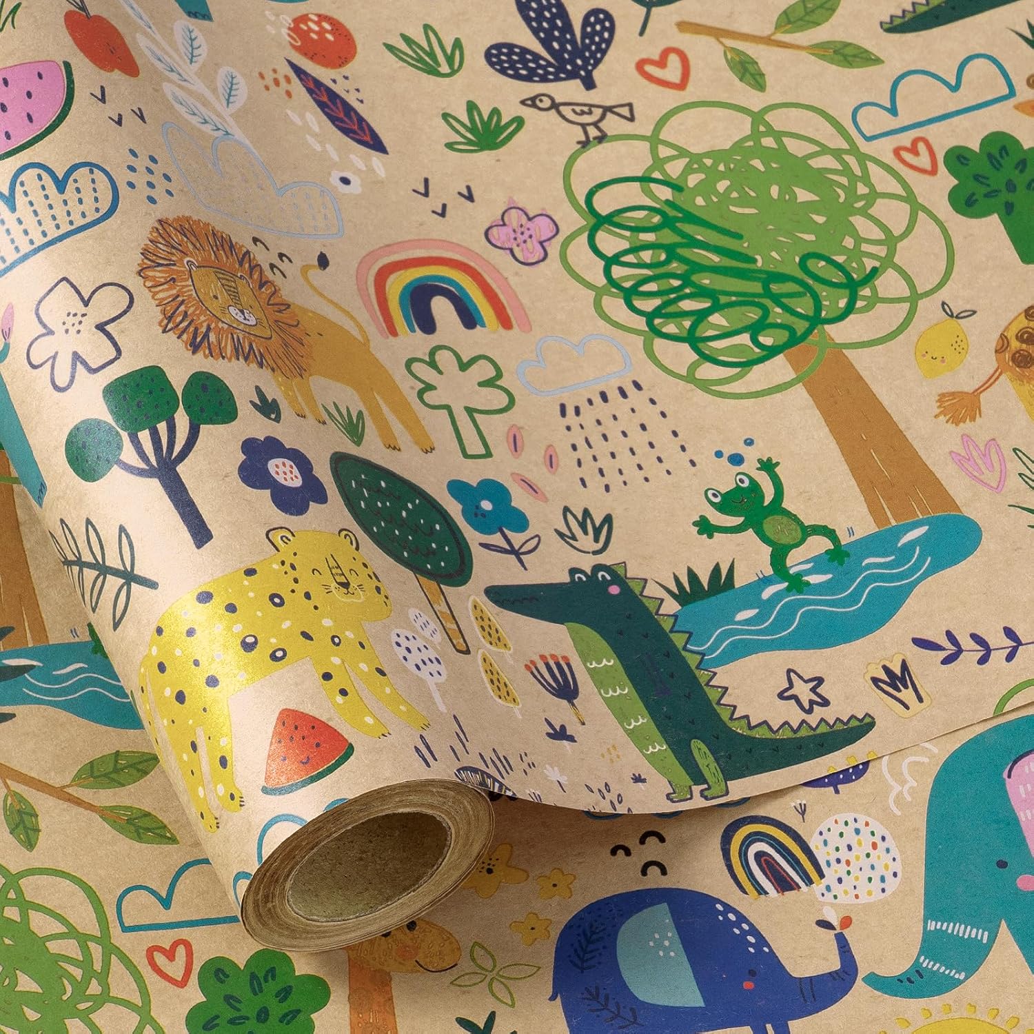Add a touch of joy to your gift-wrapping with our baby shower wrapping paper roll. Crafted from high-quality kraft paper, this wrapping paper is durable and tear-resistant, providing a reliable wrapping option for any special occasion. The adorable animal-themed design is perfect for celebrating baby showers, birthdays, or any event where kids are the stars. Each jumbo roll measures 30 inches wide by 32.8 feet long, giving you plenty of paper to wrap multiple gifts. With its vibrant colors, this wrapping paper brings a cheerful charm to every present. Ideal for baby boy or neutral themes, it's the perfect choice for parents, friends and family looking to make their gifts stand out.